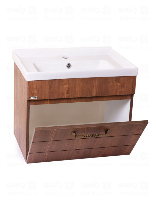 این کابینهای روشویی با ظاهری ساده و شیک و در سبک نئوکلاسیک طراحی شده است. جلوه ساده و رنگ قهوه ای تلفیق شده با رنگ چوب با تمام فضاها و دکورها همخوانی دارد. ظاهر بیرونی مدل کاملا یکپارچه است. یراق آلات توکار و درب به صورت داشبوردی و با آرامبند میباشد. کابینهای روشویی چارسو در مدل ایستاده تولید میشود. مدلهای ایستاده به راحتی جابجا میشوند و نیازی به سوراخ کردن دیوار ندارند. این ویژگی کمک میکند در مواقع تغییر دکور یا تعویض خانه هیچ سختی نداشته باشید.