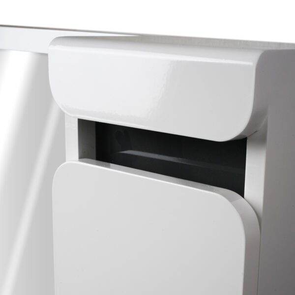 این کابینهای روشویی با ظاهری ساده و شیک و در سبک نئوکلاسیک طراحی شده است. جلوه ساده و رنگ سفید تلفیق شده با رنگ چوب با تمام فضاها و دکورها همخوانی دارد. ظاهر بیرونی مدل کاملا یکپارچه است. یراق آلات توکار و درب به صورت داشبوردی و با آرامبند میباشد. کابینهای روشویی چارسو در مدل ایستاده تولید میشود. مدلهای ایستاده به راحتی جابجا میشوند و نیازی به سوراخ کردن دیوار ندارند. این ویژگی کمک میکند در مواقع تغییر دکور یا تعویض خانه هیچ سختی نداشته باشید.