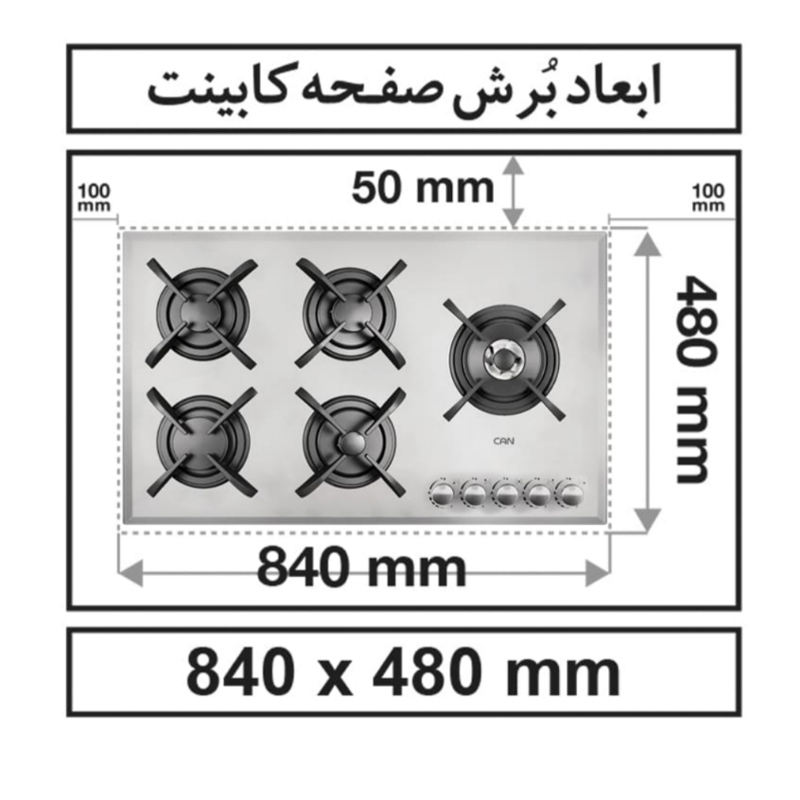 - سایز اجاق گاز: طول: 88 سانتی متر عرض: 51 سانتی متر